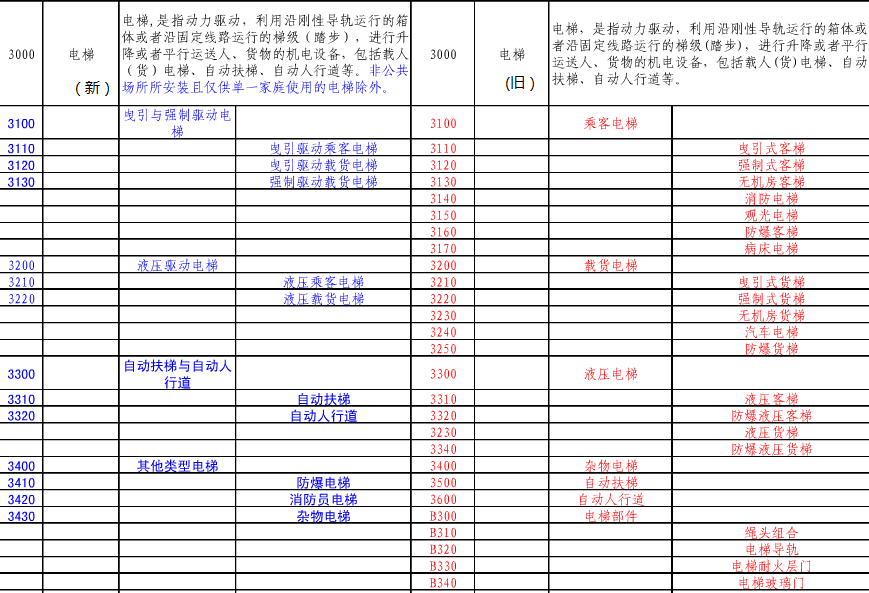 電梯特種設(shè)備目錄(2014版新舊對照表)